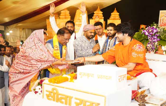 रायपुर।  4 से 8 अक्टूबर तक अवधपुरी मैदान, श्रीनगर रोड, गुढ़ियारी में स्व. श्री पुरुषोत्तम अग्रवाल स्मृति फाउंडेशन के तत्वावधान में आयोजित श्री हनुमंत कथा के विश्रांति दिन पर बागेश्वर धाम पीठाधीश्वर पूज्य पं. धीरेंद्र कृष्ण शास्त्री छत्तीसगढ़ पहुंचे। मुख्यमंत्री विष्णुदेव साय ने कथा श्रवण कर रहे श्रद्धालुओं को संबोधित करते हुए कहा कि छत्तीसगढ़ के लिए यह गौरव का विषय है कि माता कौशल्या का मायका और प्रभु श्रीराम का ननिहाल होने के कारण पावन भूमि पर महामानव का आगमन हुआ।