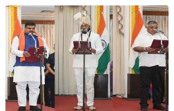 रायपुर। मुख्यमंत्री विष्णुदेव साय की कैबिनेट में बुधवार को तीन नए मंत्रियों को शामिल किया गया। राजभवन में आयोजित शपथ ग्रहण समारोह में राज्यपाल के समक्ष अंबिकापुर विधायक राजेश अग्रवाल, आरंग विधायक गुरु खुशवंत साहेब और खरसिया विधायक गजेंद्र यादव ने मंत्री पद और गोपनीयता की शपथ ली।