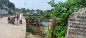 वही दीवाल के बीच मे लगा बिजली का पोल तालाब नीचे पानी की ओर गिरने के कगार पर खड़ा है। यदि बिजली का पोल तालाब मे गिरा तो विद्युत करंट हो जाने से कभी भी बड़ी दुघर्टना होने की आशंका बन रहा है। इस ओर समय रहते नगरपंचायत को ध्यान देने की नितांत आवश्यकता है।